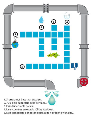 Las posibilidades son múltiples y en Internet hay infinidad de ideas. Por ejemplo, quizás podrías buscar algunas imágenes del Día Mundial del Agua para niños que se puedan colorear, plantea algún problema de cálculo implicando agua o descubrir cuentos y juegos para toda la familia. ¿Cuánto tardas en resolver el siguiente crucigrama y sopa de letras sobre el agua?
